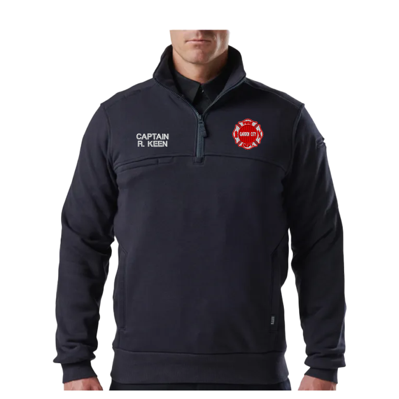 Pull-over job shirt with zipper closure locker loop mic Clip pockets set into Left/right Shoulder Seams right chest Drop pocket Left upper sleeve pen pocket on seam Hand pockets fade and Shrink resistant reinforced elbow patches Rib cuffs and waistband hem Body: 80% cotton/ 20% polyester fleece 10.3-oz., DWR finish Overlays: 100% cotton canvas, 8.3-oz., DWR finish Rib: 96% cotton 4% elastane 2×2 rib, 11.8-oz., non-fade