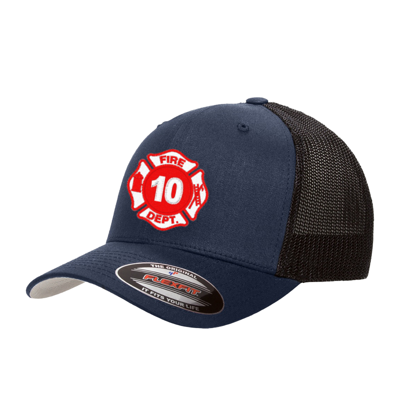 55% polyester / 43% cotton / 2% PU spandex Trucker cap with elastic mesh panels Hard buckram. Structured Closed back. Stretch fitted Silver undervisor, 8-row stitching on visor Sizes: One Size (6 7/8” – 7 1/2”)