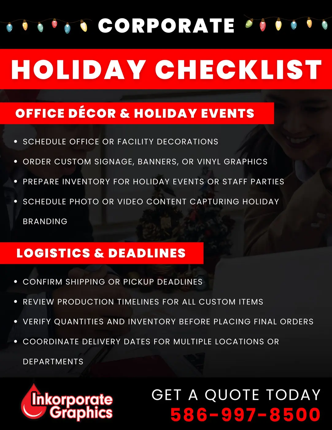 Below is a helpful Holiday Planning Checklist to keep your team organized.